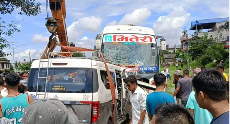 धनगढ़ी से काँकडभिट्टा आ रही प्रदेश१–०१–००१ख ३५८३ नंबर की बस और मकवानपुर से नारायणगढ़ जा रही वाग्मती प्रदेश ०३–००१ज २९९ नंबर की गाड़ी आपस में टकरा गई थी