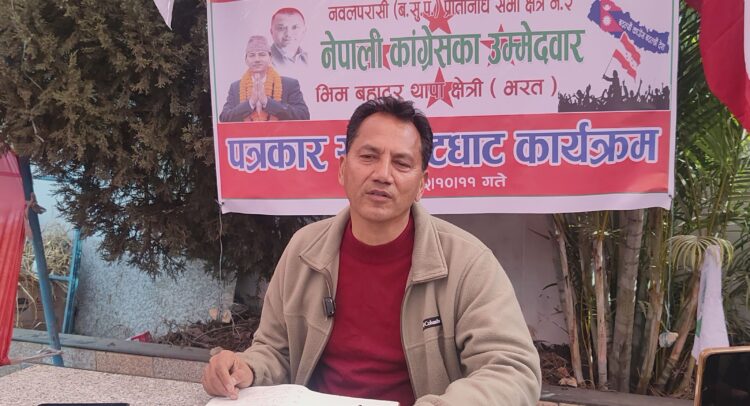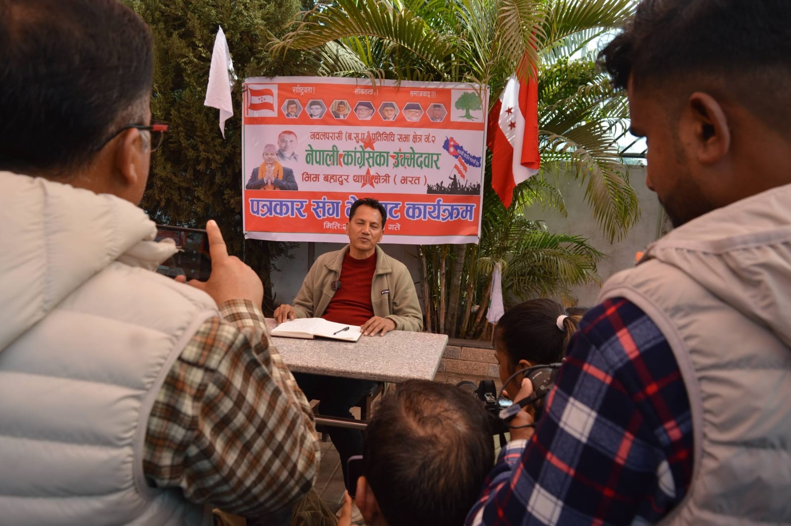आगामी 21 फागुन को होने वाले प्रतिनिधि सभा के निर्वाचन के लिए पश्चिम नवलपरासी क्षेत्र नं. 2 से नेपाली कांग्रेस की ओर से युवा उम्मीदवार भीम बहादुर थापा (भरत) चुनावी मैदान में हैं। नेपाली कांग्रेस लुम्बिनी प्रदेश के सदस्य थापा, स्थानीय स्तर पर अपना कार्यकाल पूरा कर चुके एक प्रतिष्ठित समाजसेवी के रूप में पहचाने जाते हैं।