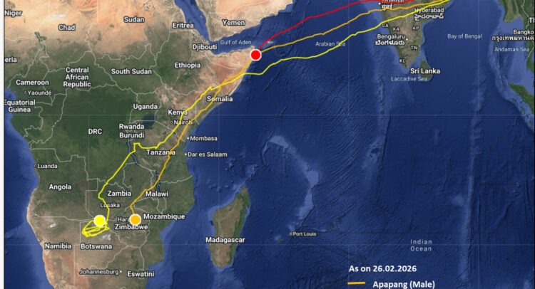 The latest report from Dr. R. Suresh Kumar, Wildlife Institute of India, Dehradun said that all the three Amur falcons are still active and doing well. Earlier it was thought Ahu might be having some issues but now he confirmed that it is also having local movements but confined around Somalia only. During the last wintering migration of Chiuluan 2, they start it’s north ward migration to its breeding ground on 14th April 2025. Ahu is still in Somalia, Apapang is in Zimbabwe and Alang is in Botswana as on date!.
