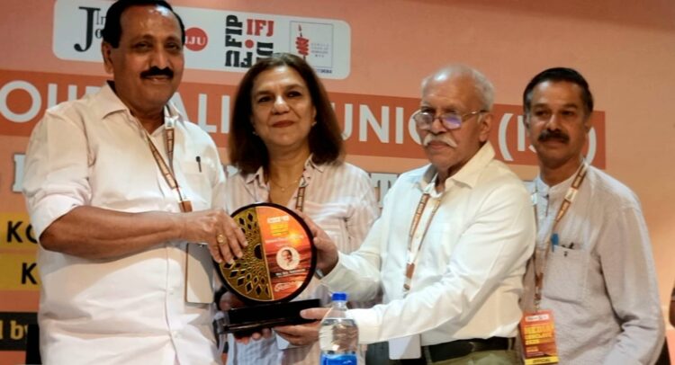 Smt Sabina Inderjit, Secretary General, IJU, presented a detailed report on the Union’s activities, outlining key issues before the NEC and calling for coordinated national-level action on journalist protection, welfare, and rights.