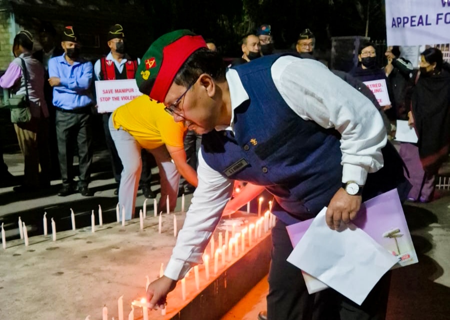 Armed Forces Ex-Servicemen Association of Manipur (AFESAM) and their families held a candlelight appeal for peace in Manipur